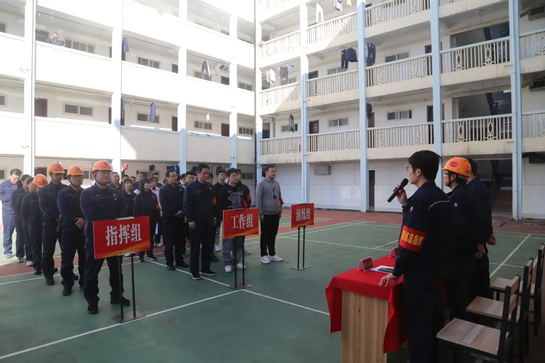 3、2021年11月10日,长岭分公司在机电园宿舍举行火灾消防逃生应急演练,本次演练机电公司生产部经理刘志强、机电公司副总经理谢毅任演练顾问,长岭分公司党委书记彭辉担任演练总指挥。