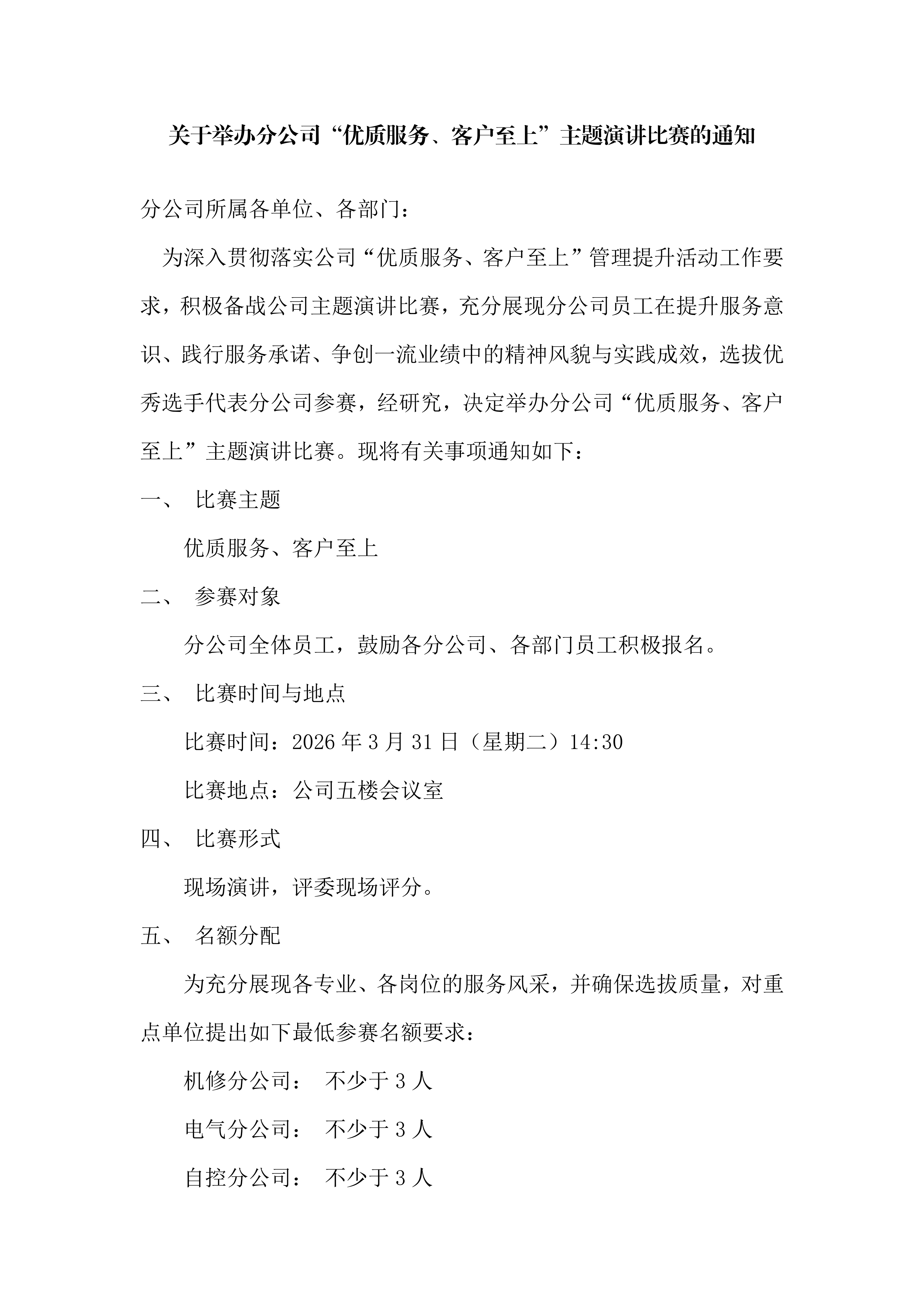 关于举办长岭分公司“优质服务、客户至上”主题演讲比赛的通知(1)(1).doc